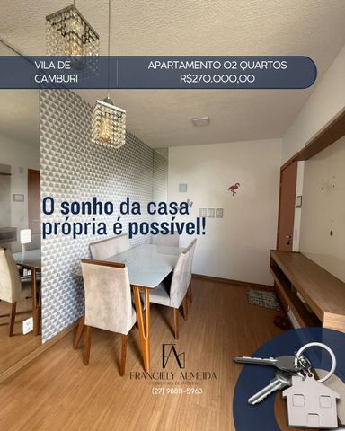 Oportunidade Imperdível em Vila de Camburi – Apartamento 2 Quartos 🏡 Apresentamos este aconchegante apartamento de 2 quartos, com sol da manhã e entregue porteira fechada — ideal para quem quer a praticidade de entrar e morar agora mesmo, sem preocupações! Destaques do imóvel: • 2 quartos completos • Ar-condicionado instalado • Fogão 4 bocas + geladeira + armário de cozinha • Sala com sofá, mesa e painel de TV — espaço pronto pra você decorar do seu jeito • Guarda-roupa inclusos • Todo com piso laminado de madeira — conforto e estilo • 2 vagas de garagem — comodidade garantida 📍 Localizado em Vila de Camburi — um bairro com ótima valorização, perto de serviços e com aquele vibe marinha que dá paz pro cotidiano. 💰 Valor final de venda: R$ 270.000,00 (Possibilidade de usar FGTS + saldo devedor: R$ 119.000,00 — oportunidade inteligente pra quem quer começar com o pé direito) 📲 Entre em contato agora mesmo e agende sua visita. Essa pode ser sua chance de conquistar um lar completo, confortável e do jeitinho que você sempre sonhou! 🏡