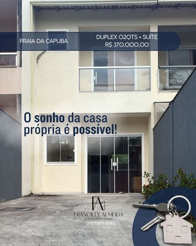 Pronta para morar, perfeita para viver bem! Esta linda casa foi pensada nos mínimos detalhes para garantir conforto, praticidade e estilo para você e sua família! Sobre o Imóvel🏠 - 2 quartos - 2 ar-condicionado - Guarda-roupas no quarto de casal e solteiro - Banheiro montado com box - Armário Cozinha com armários - Quintal coberto Condomínio🏘️ Condomínio completo com área de lazer incrível que possui piscina, churrasqueira, salão de festas, espaço gourmet, playground, quadra poliesportiva, portaria 24h e muito mais! Proporcionando a comodidade e segurança que você e sua família merecem! Localização📍 Cond. Vila Itacaré, Praia da Baleia – Serra/ES Em uma região que está em constante crescimento, que conta com supermercados, igrejas, escolas, próxima à praia de Manguinhos e tudo que você precisa para viver com tranquilidade e praticidade! Tudo isso por apenas R$330.000,00! 💰 Não perca essa chance de realizar o sonho da casa própria com um excelente custo-benefício! - Franciely Almeida CRECI 10751-F Entre em contato e garanta já o seu imóvel! 📞 (27) 98811-5963