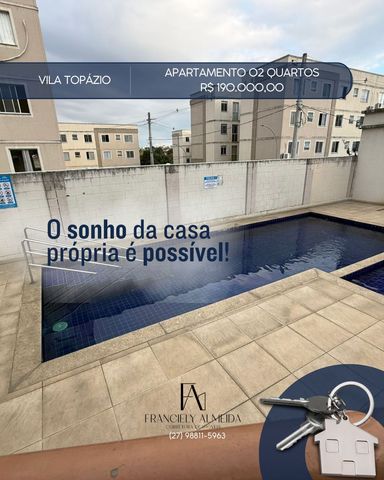 Apartamento 02 Quartos Térreo - Vila Topázio Vila Bethânia Viana/ES Apartamento conta com: 02 quarto 01 sala 01 cozinha 01 banheiro 1 vaga de garagem descoberta. Lazer completo Com piscina Churrasqueiras. Salão de Festa Playground Investimento: R$ 175.000,00 Entre em contato, agende uma visita e traga a sua família para morar aqui! Pode ser Financiado e Usar FGTS Franciely Almeida CRECI ES 10751-F (27)98811-5963 (27)99955-5963