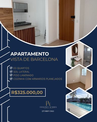 Vista de Barcelona — 3 Quartos em Condomínio Clube com Acabamento Impecável 🏡✨ Apresentamos este apartamento à venda no Condomínio Vista de Barcelona, localizado em Porto Canoa, na Serra/ES. Um imóvel novíssimo, pronto pra morar, que une conforto, praticidade e uma estrutura completa de lazer pra você viver bem todos os dias. Destaques do imóvel: • 3 quartos bem distribuídos • Andar intermediário — equilíbrio ideal de ventilação e praticidade • Sol lateral — mais conforto térmico • Piso em laminado de madeira — mais aconchego e sofisticação • Cozinha com armários planejados • Lavabo com armário • Imóvel impecável, praticamente novo 📍 Localizado no Condomínio Vista de Barcelona — um verdadeiro condomínio clube, com portaria, piscina, área gourmet, salão de festas e espaços de convivência que garantem segurança e lazer completo para toda a família. 💰 Investimento: R$ 325.000,00 📲 Entre em contato agora mesmo e agende sua visita. Esse é o tipo de imóvel que resolve sua vida: você entra em um espaço pronto, bem acabado e com estrutura completa, em uma região com alta procura e excelente potencial de valorização. ✨